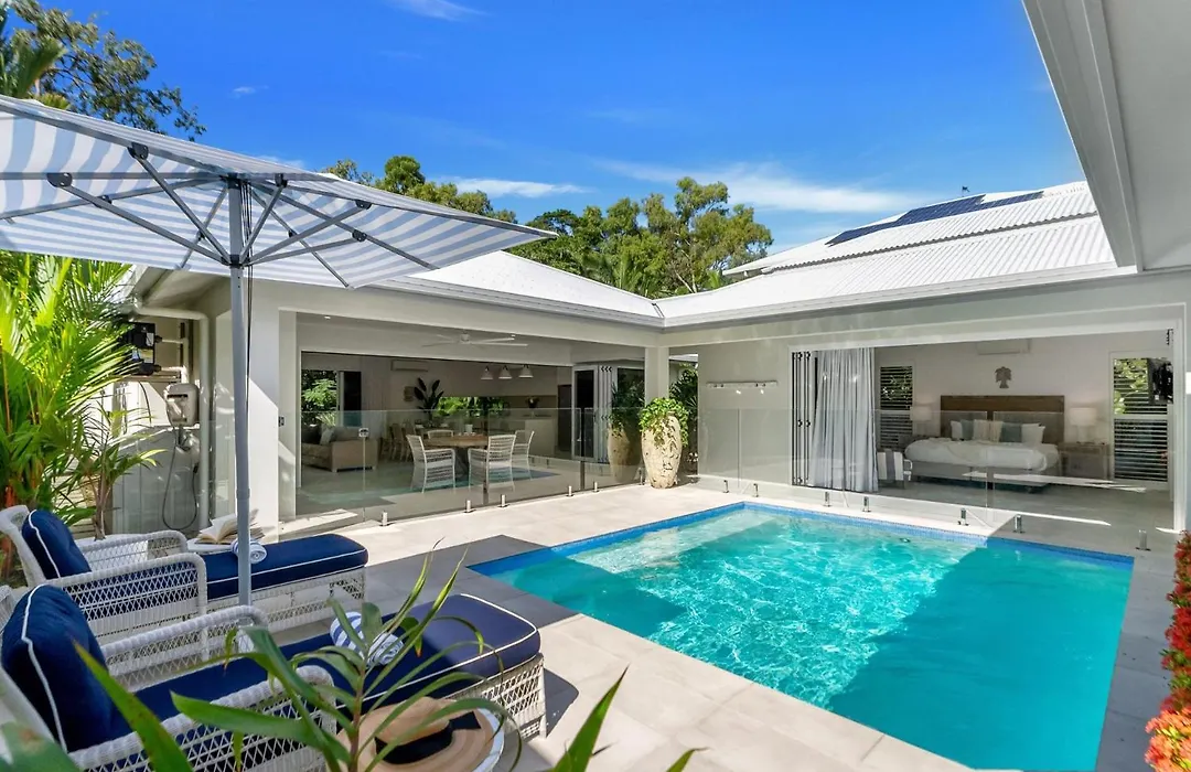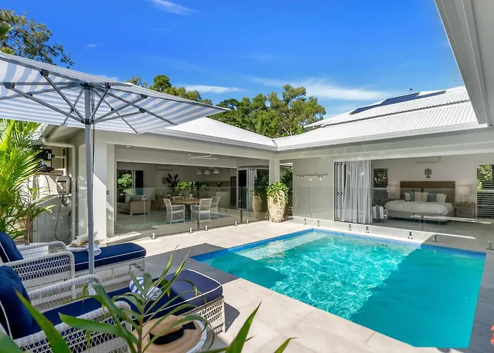 パーム コーブ ビーチから歩いて20分以内に位置する寝室2室のBelle Escapes Beachmont House パーム・コーブ 別荘は、プールの眺めを望むテラスを提供しています。 Pacific Watersportsかなり近くの浴室2室の別荘にのお客様は、WiFiと無料の専用駐車場を利用することができます。